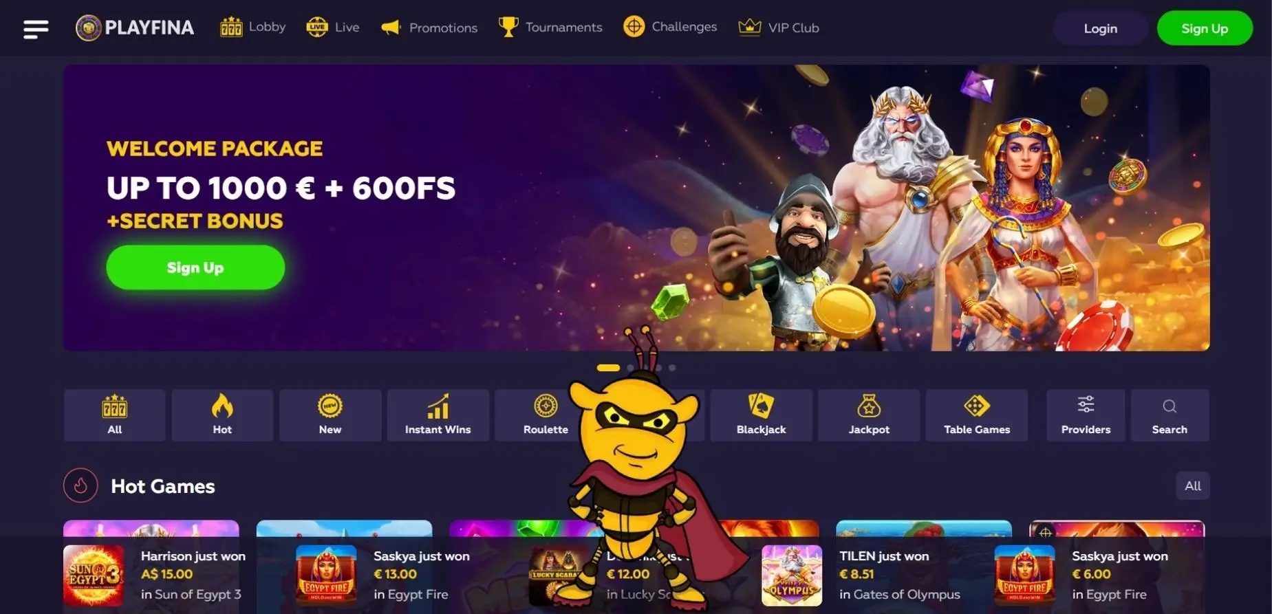 To start playing your favorite games at Playfina, you must create a personal account. After that, you can access all the site's functionality Get your hands on amazing rewards for free with PlayFina's no deposit bonuses!! Playfina Casino Review - No Deposit, Free Spins And Best Playfina Casino How to Start Up to 1000€ + 200 FS + Secret Bonus!!! You instantly get presented with the casino's primary services and listed games, as well as its live casino section...
